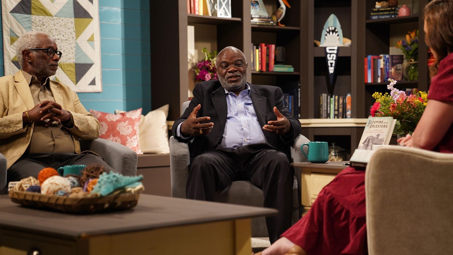 Holly Jackson sits with authors Joseph McGill Jr. and Herb Frazier to discuss Sleeping with the Ancestors. McGill, founder of the Slave Dwelling Project, discusses his experience staying overnight in former slave quarters. Frazier describes the challenges of writing on a sensitive topic. Both reflect on their journey and the book’s impact.