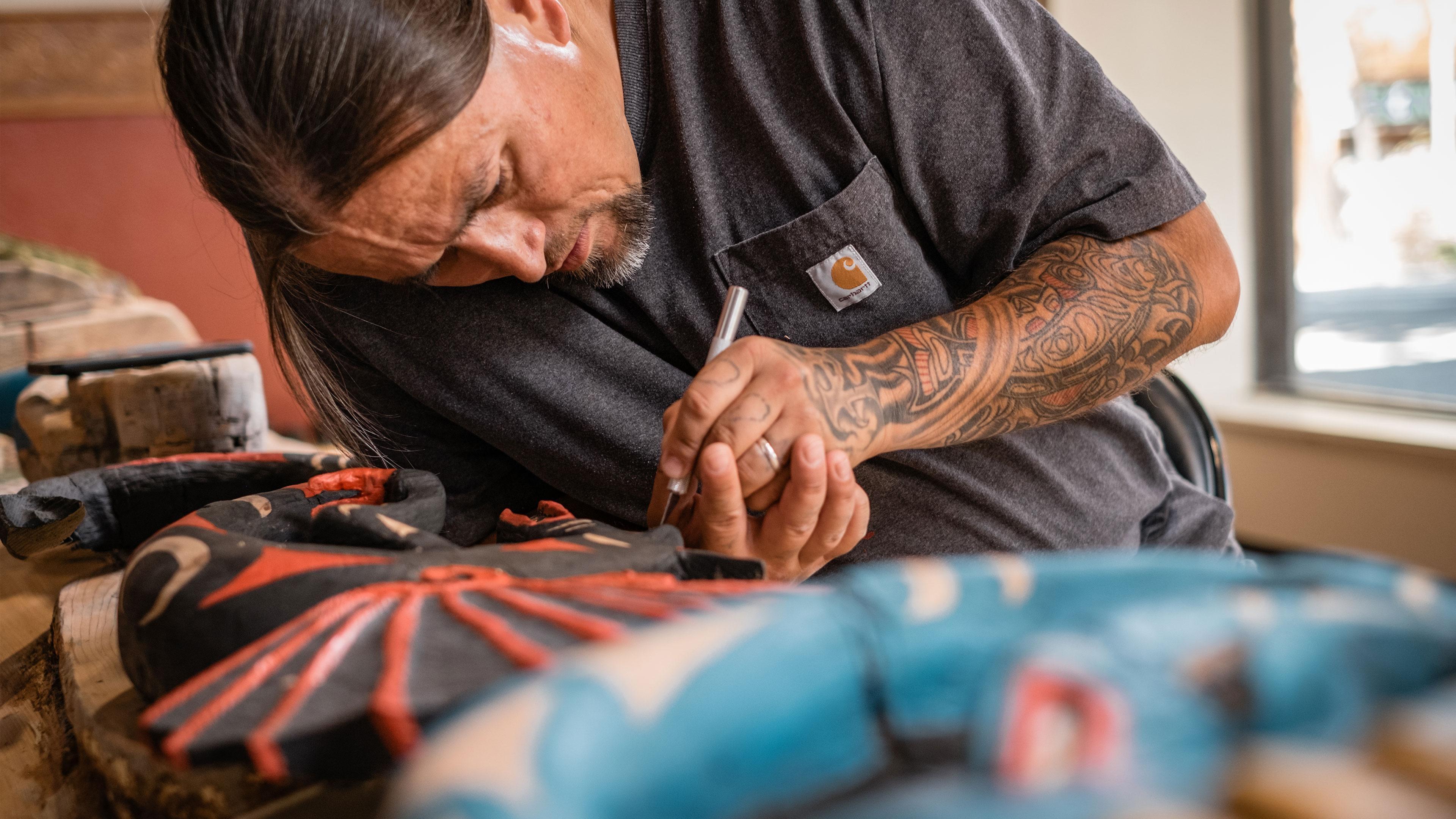 From struggling on the streets to teaching in the public school district, Jason LaClair’s recovery from opioid addiction is remarkable. Jason received the charge to complete the carving of a “Story Pole.” LaClair’s restoration and completion of the story pole reflect the redemption of his own life. He’s now taken on the mantle of an educator, mentor, and acclaimed artist.